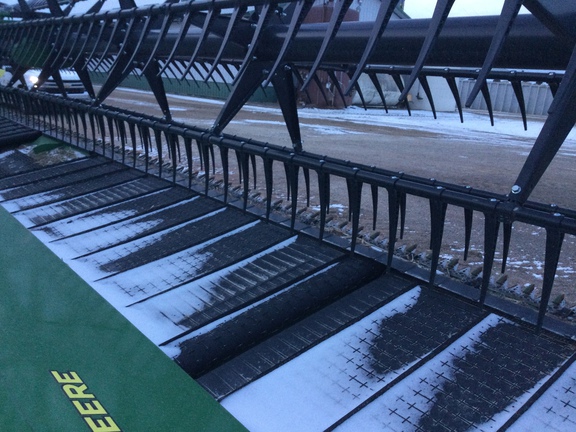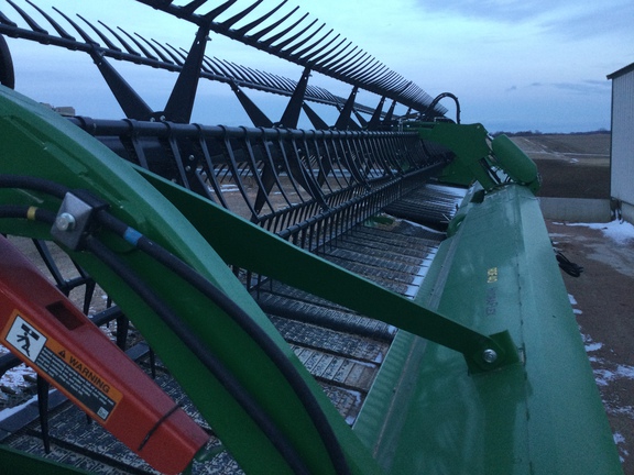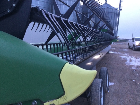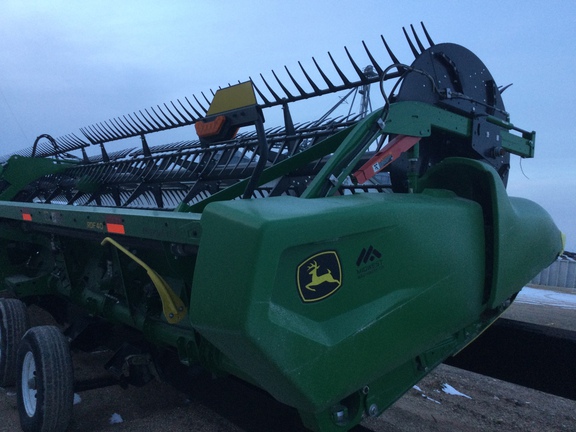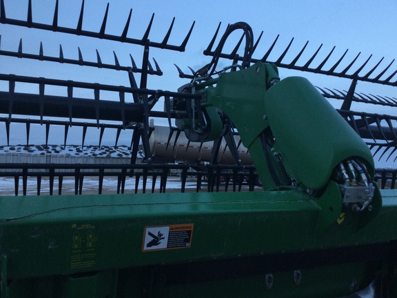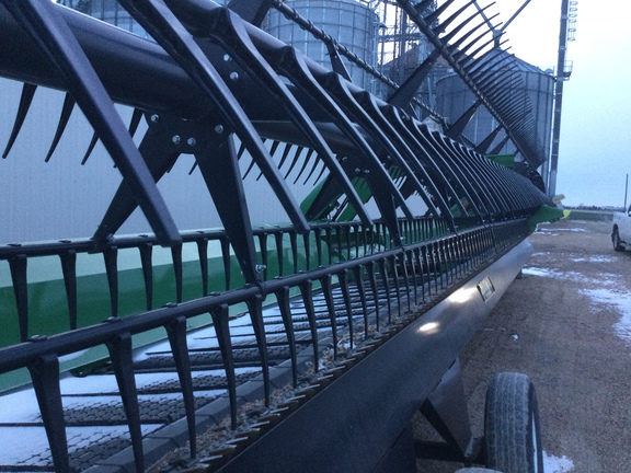 40™ flex draper, dual knife drive, reel flip over system, center crop flow divider