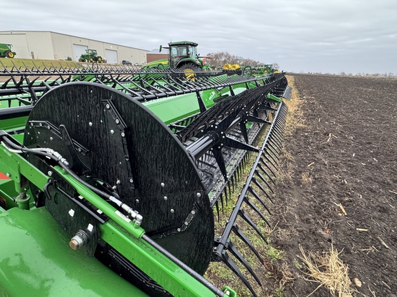 40™ flex draper, dual knife drive, reel flip over system, off ground HHS, center crop flow divider