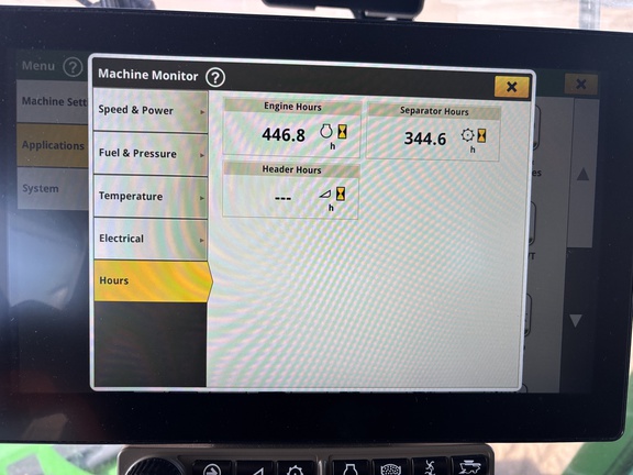 800x38 front duals, 750x26 rears, 4-Wheel Drive, signature edition, ultimate cab, ultimate tech pkg, ultimate suspension pkg, integrated receiver, pro drive transmission, command touch multi-speed feederhouse, manual fold grain tank ext, powercast tailboard, coolant heater, rear hitch ready, full machine warranty until Sept 9, 2026