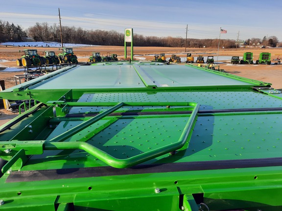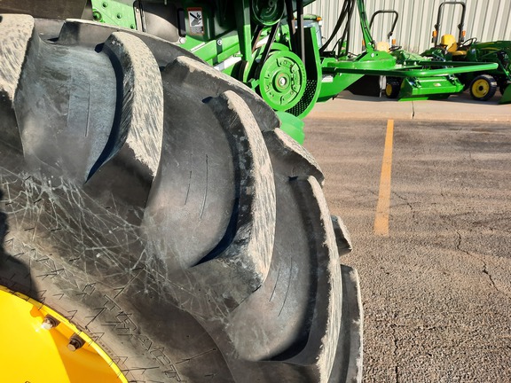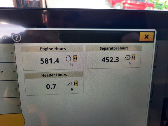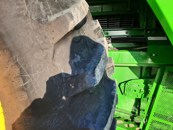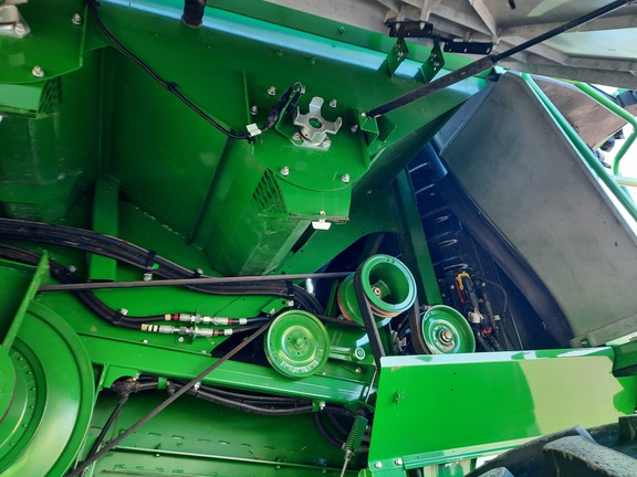 Extended powertrain warranty until June 1 2027 or 1250 hours, 650x38 front duals, VF750x30 rears, 4-Wheel Drive, premium cab pkg, ultimate tech combine advisor, active yield, pro drive transmission, command touch multi-speed feederhouse, power folding grain tank, powercast tailboard, tracks ready axle, coolant heater, machine sync antenna