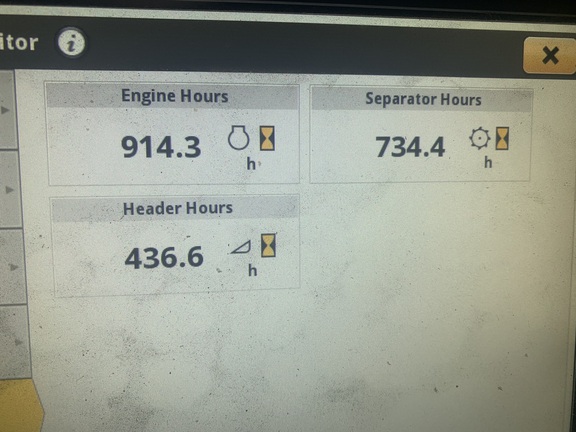 650x38 front duals, 750x26 rears, 4-wheel drive, premium cab, premium visibility pkg, active yield, pro drive transmission, 26™ unload auger, manual fold grain tank extension, powercast tailboard, tracks ready axle, coolant heater, machine sync antenna