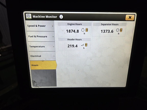 650X38 front duals, 750x26 rears, 4-wheel drive, premium cab, LED lights & extremity, 104600 display, pro drive transmission, command touch multi-speed feederhouse, 26™ unload auger, power folding grain tank, powercast tailboard, coolant heater