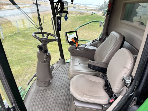 650x38 fronts w/ duals, 750x26 rears, 4-Wheel Drive, premium cab, leather package, premium sound system, LED lights & extremity, combine advisor, active yield, pro drive transmission, command touch multi-speed feederhouse, power folding grain tank, 26™ unload auger, manual adjust tailboard, tracks ready axle, coolant heater, side hill performance pkg,