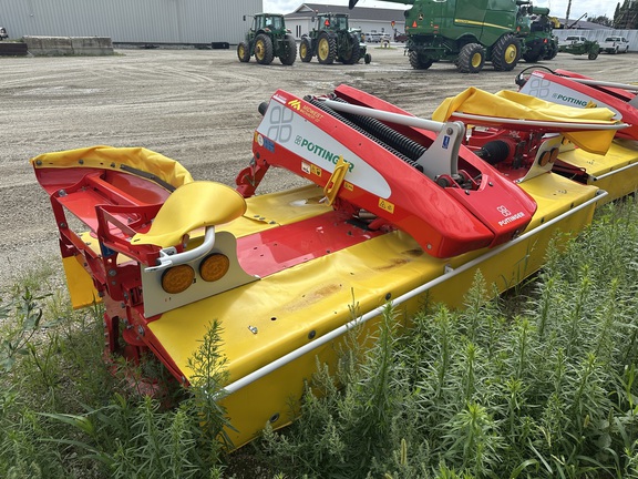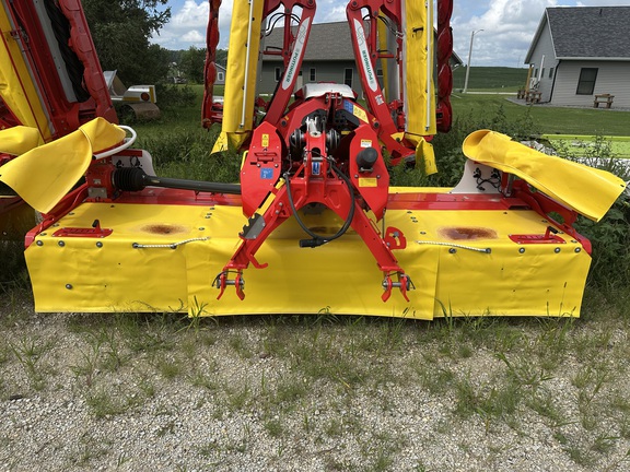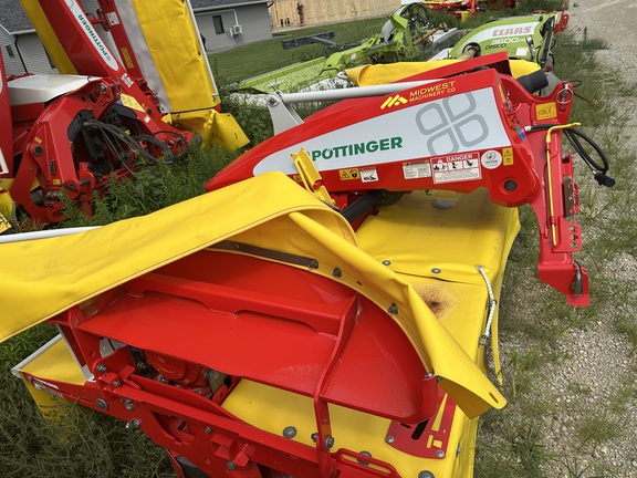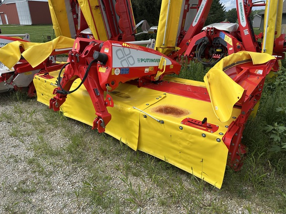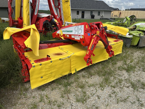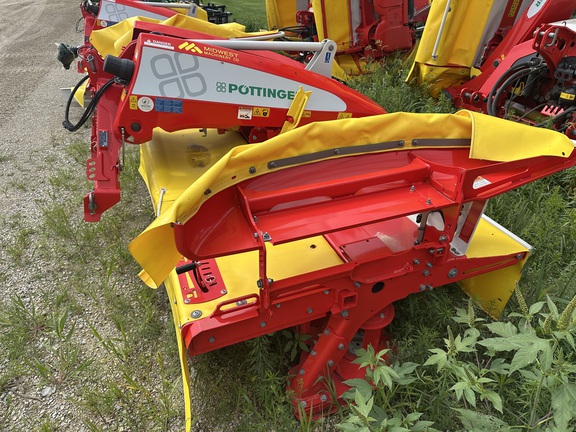 New Pottinger 351 Alpha Motion front mounted mower, no conditioners, heavy cutter bar, quick change knives, excellent ground tracking and suspension, LED lights, super good cut quality.