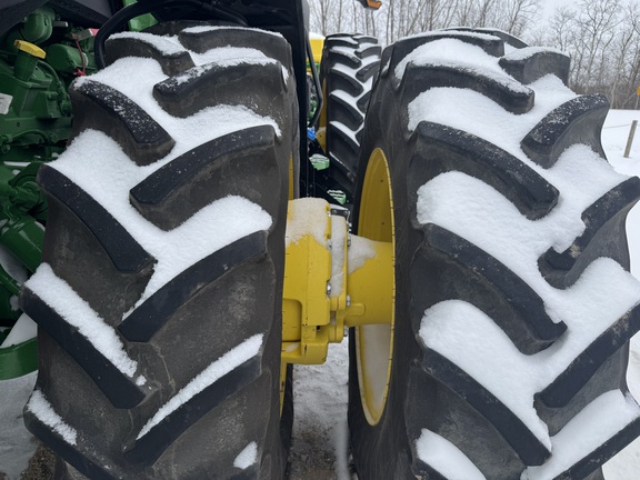 480x50 Rear Duals and 420 fronts. fronts w/ duals, signature edition, 12.8G5 display, cab suspension, integrated receiver, IVT transmission- for infinite variable speed adjust, ILS front suspension- for a superior ride, dual hydraulic pumps- for increased hydraulic capacity, ultimate visibility pkg, front fenders, autonomy prep, dual beam radar, cold weather pkg, backup alarm, (22) front weighs, full machine warranty until Feb 14, 2026 or 2000 hours