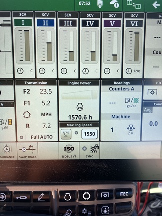 370hp, 480x50 rears w/ duals, 420x34 fronts w/ duals, signature edition, integrated SF6000 receiver, 104600 display, cab suspension, IVT transmission (50K)- for infinite variable speed adjust, ILS front suspension- for a superior ride, dual hydraulic pumps- for increased hydraulic capacity, 6 SCV™s, 1000 PTO, ultimate visibility pkg, front fenders, rear fender extensions, dual hydraulic trailer brake, (22) front weights, (2) 1400# wheel weights