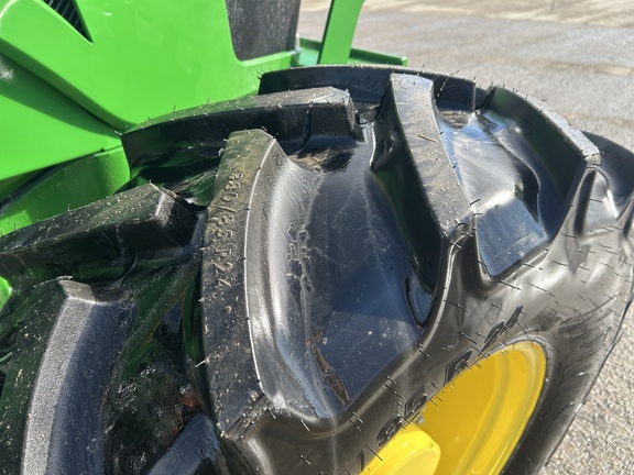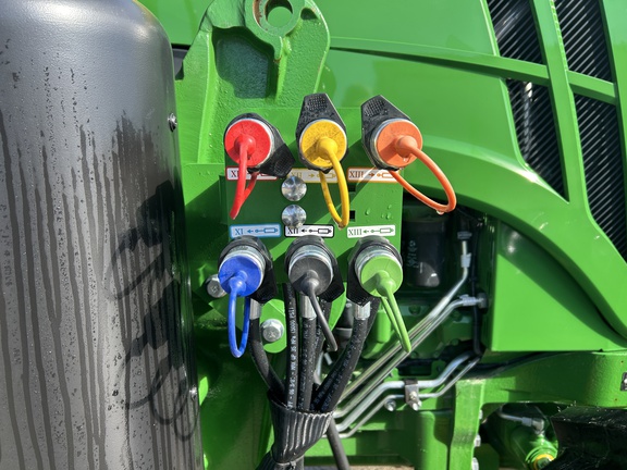 135hp, MFWD, 460x38 rears, 380x24 fronts, greenstar harness, air suspension seat, instructional seat, 24F/12R transmission w/ power reverser & hi-low powershift, 3 mid & 3 rear SCV™s, 540/1000 PTO, premium light pkg, loader ready pkg, loader view roof, front base weight, full machine warranty until Jan 25, 2027 or 2000 hours