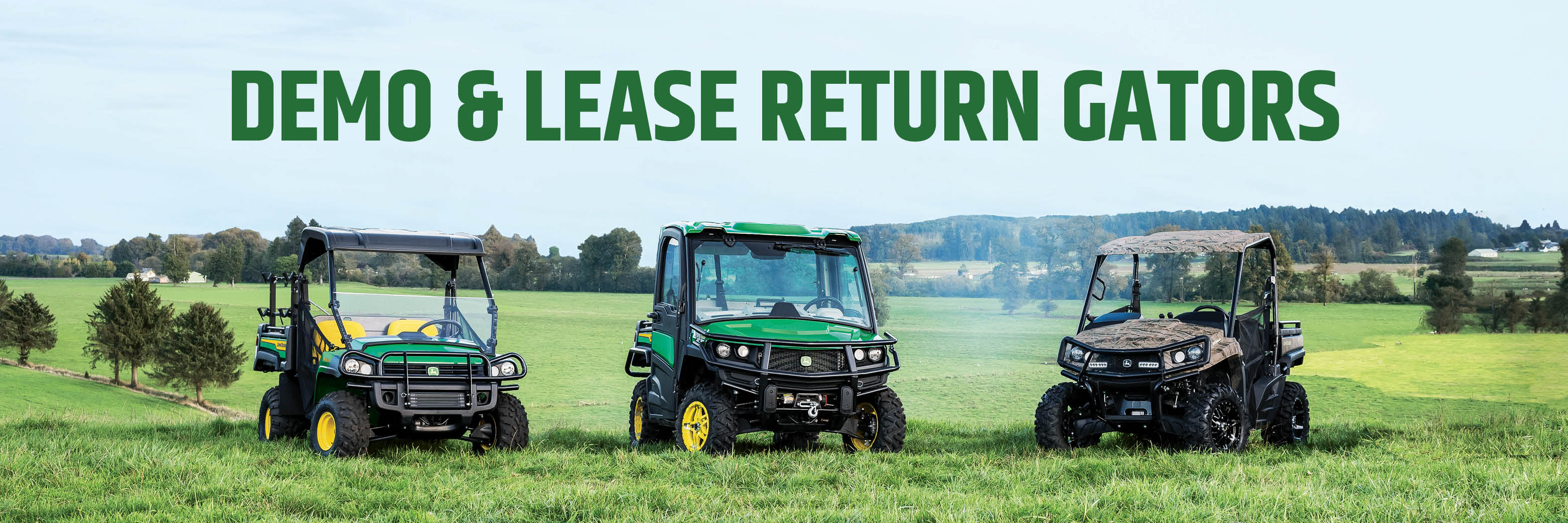 Demo Fleet Gators - Take home a low-hour John Deere Gator from our exclusive 2025 Demo Fleet. Each unit has fewer than 100 hours, backed by the original 1-year bumper to bumper factory warranty, and still qualifies for new John Deere financing incentives. They look new, run like new, and are discounted just for you.
